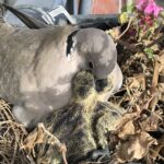 Omdat de kinderen vanwege corona thuis aan het schoolwerk zitten, bedenk ik een opdracht: ‘zoek uit welke soort duif dit is’. Het duurt niet lang of zoonlief heeft het antwoord: een Turkse Tortelduif. Via een vriendin heb ik al de nodige informatie over het nestelen van deze duiven gehad en ook op internet is er natuurlijk genoeg over te vinden. Het klopte precies! Zestien dagen na het leggen van het eerste ei, ben ik met mijn dochter op haar kamer en komt meneer Duif op bezoek: zijn twee kleintjes zijn geboren! Wat een mooi moment om dit meteen vast te mogen leggen.
